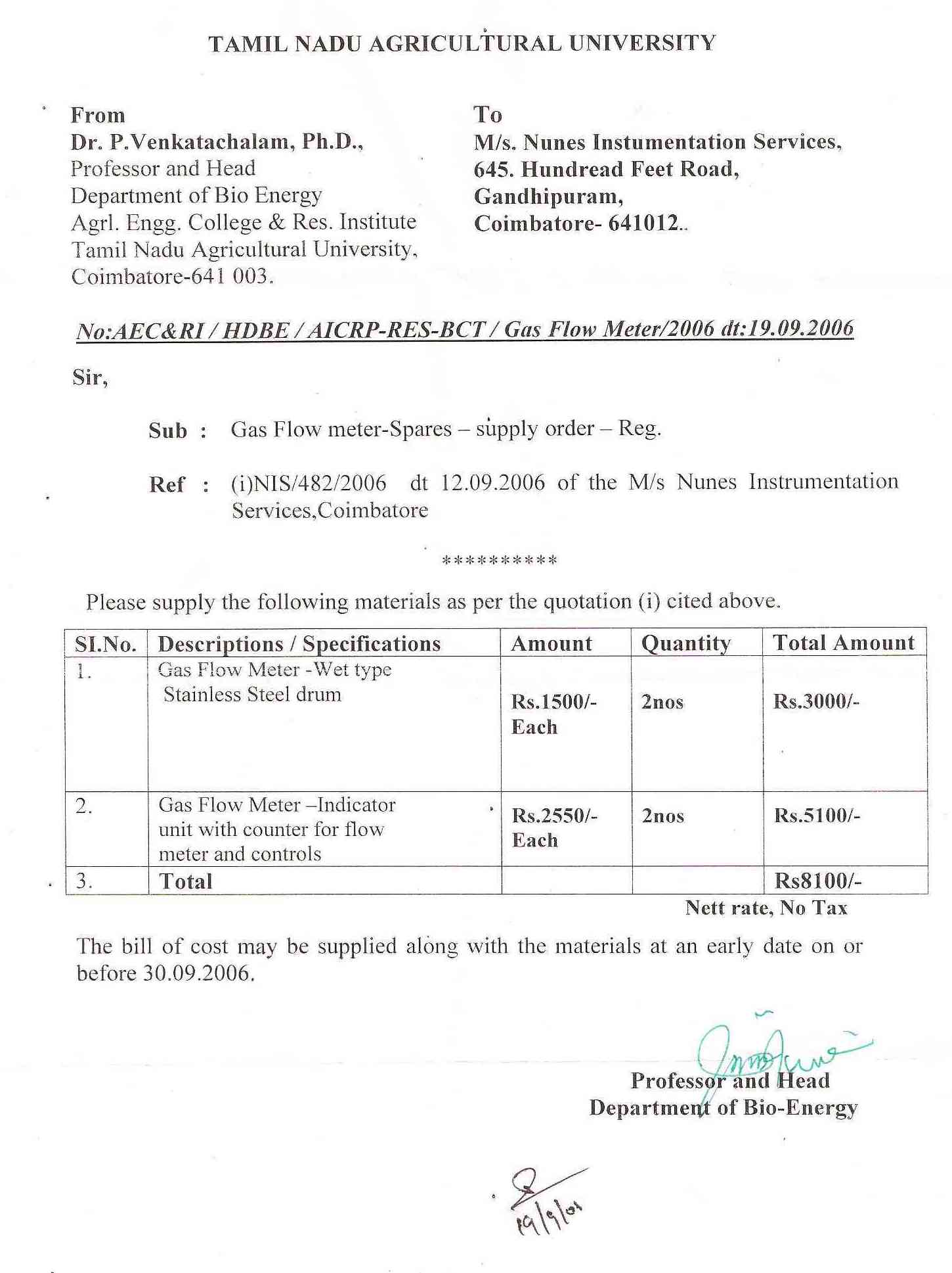- Inspection & Test Report On completion of Each batch of Instruments should be Inspected, tested and certified by the concerned Department on the same day without delay to enable us to submit bills for payment.